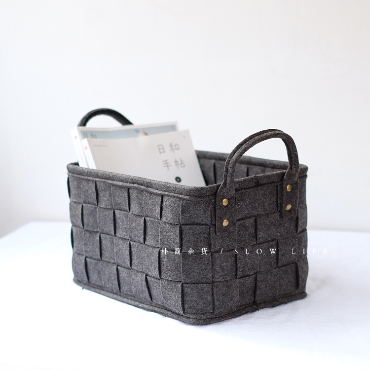 樸簡 北歐風格毛氈手提收納籃 衣物收納書籍雜志收納筐玩具收納籃