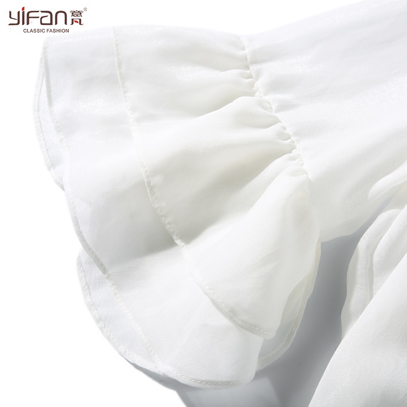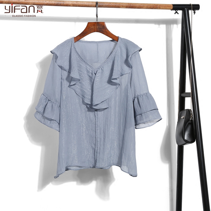 / 韓國東大門夏裝新品百搭荷葉邊V領雪紡衫女白色七分袖上衣潮