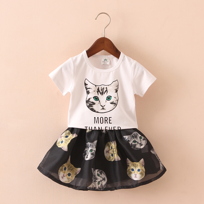 / 寶寶貓咪套裝 夏裝新款韓版童裝女童裝兒童T恤半身裙tz-3012