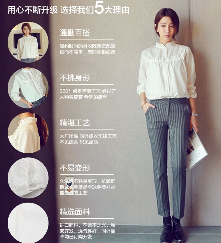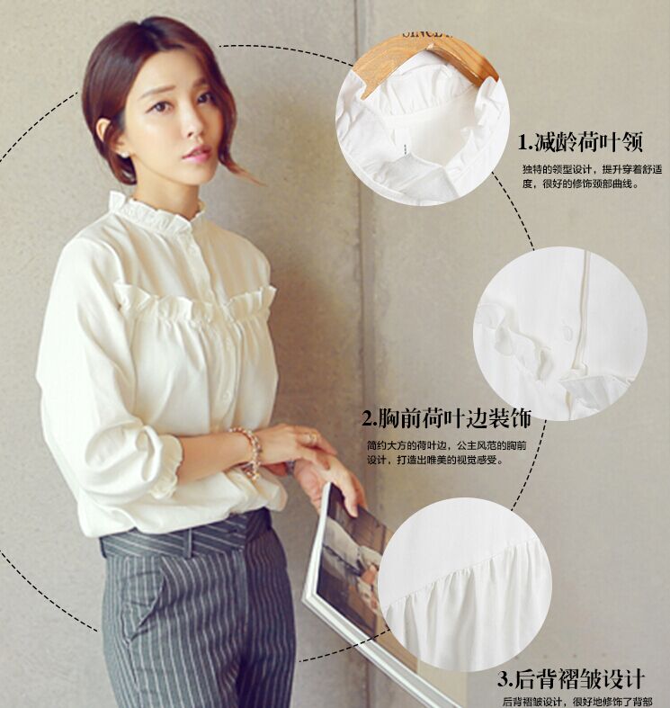 / 2017春秋裝韓版上衣大碼女裝雪紡荷葉花邊立領襯衫長袖打底襯衣女
