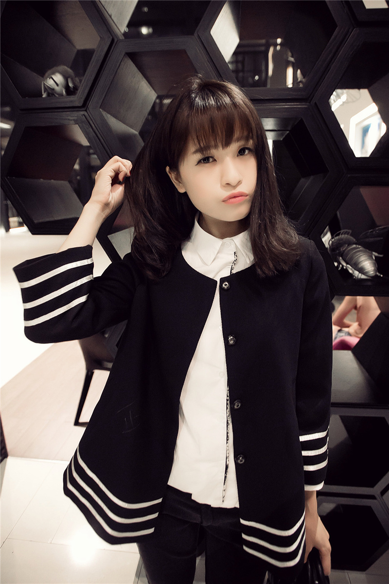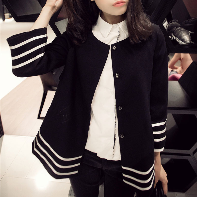 / 胖mm秋裝2016加肥加大碼女裝韓版寬松顯瘦條紋短外套小外套胖妹妹