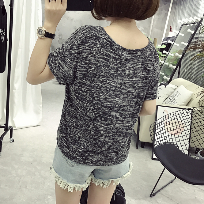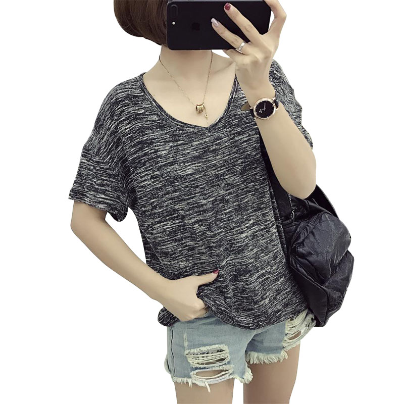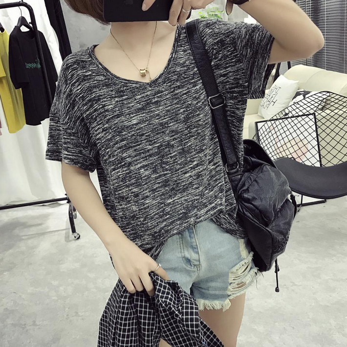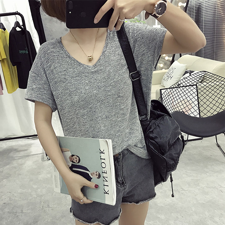 韓國寬松棉體恤夏裝針織打底衫V領短袖t恤小衫套頭學生春夏上衣女