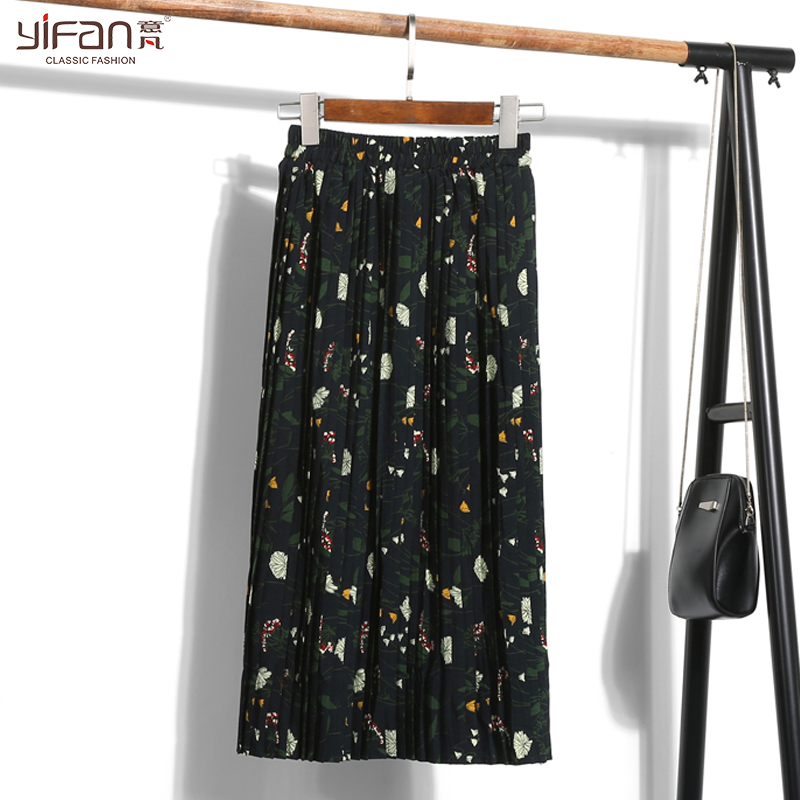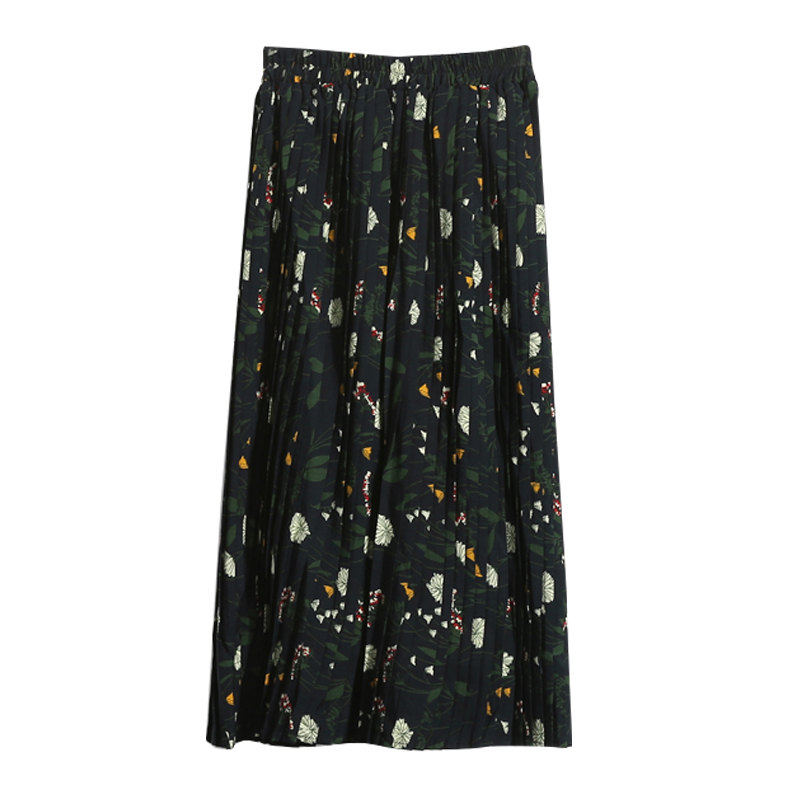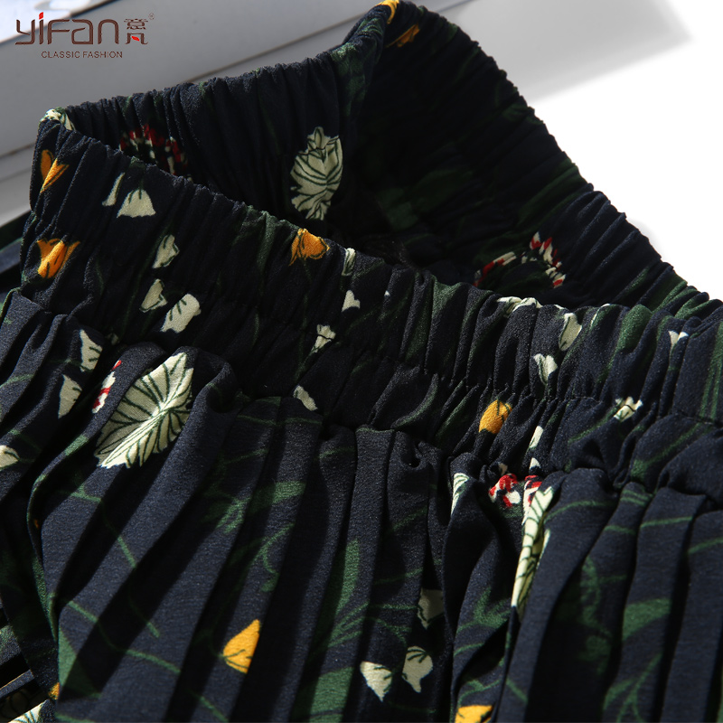 / 春款韓版小碎花收腰顯瘦中長款百褶雪紡半身裙女裝高腰打底裙