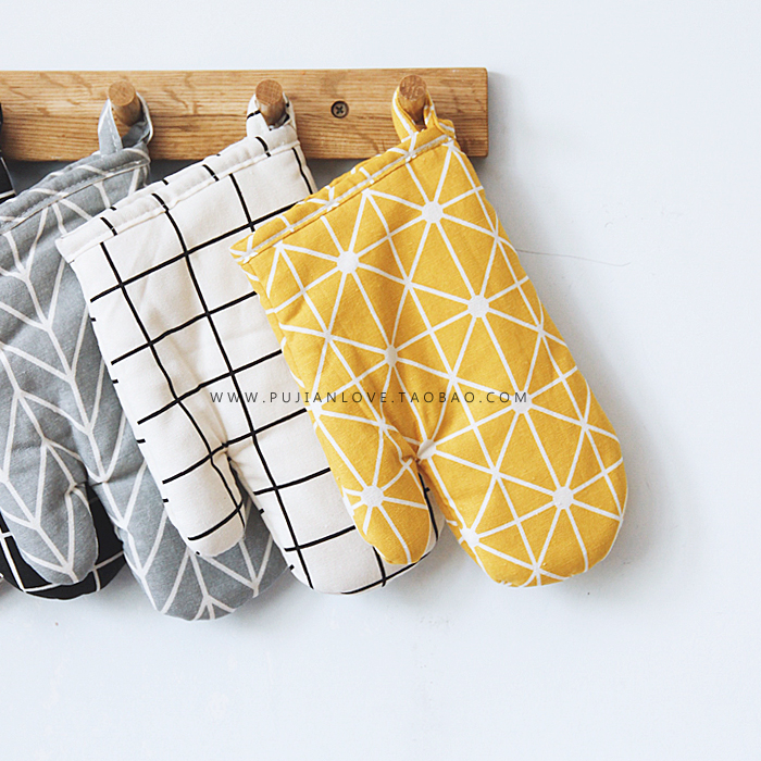 / 樸簡 日式加厚棉麻黑白布藝微波爐隔熱手套鍋墊 北歐風格子餐墊