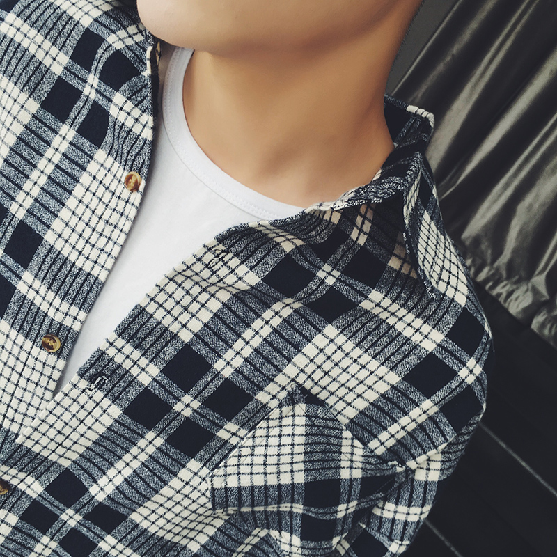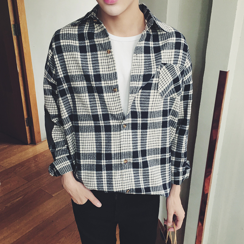 秋季新款韓版男裝休閑格子長袖襯衫男士寬松襯衣