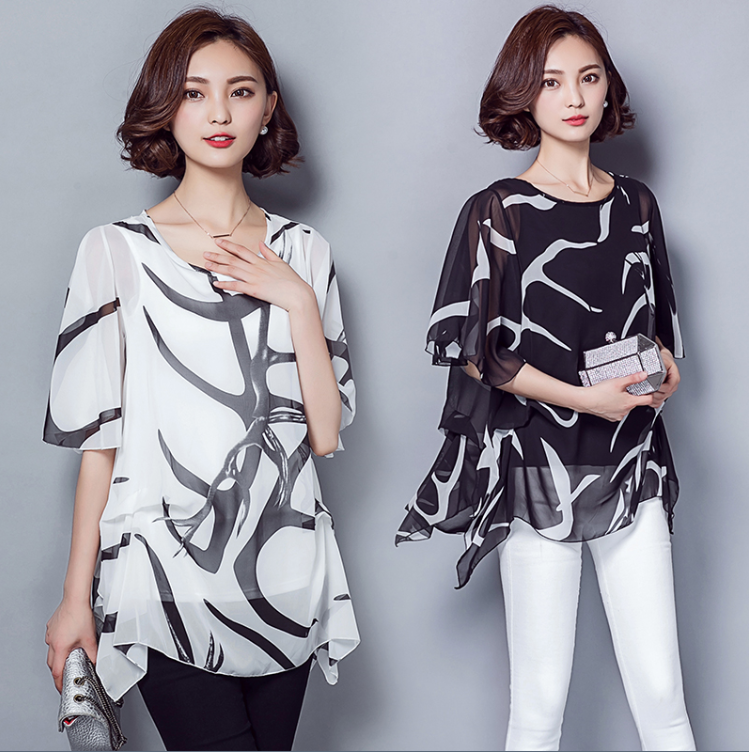 / 夏天大碼短袖碎花雪紡衫女胖mm時尚寬松遮肚子加肥加大上衣小衫潮
