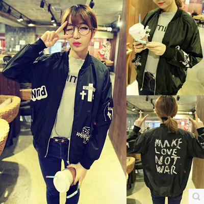 2016春秋裝韓版bf原宿風寬松字母薄風衣女短款大碼學生棒球服外套