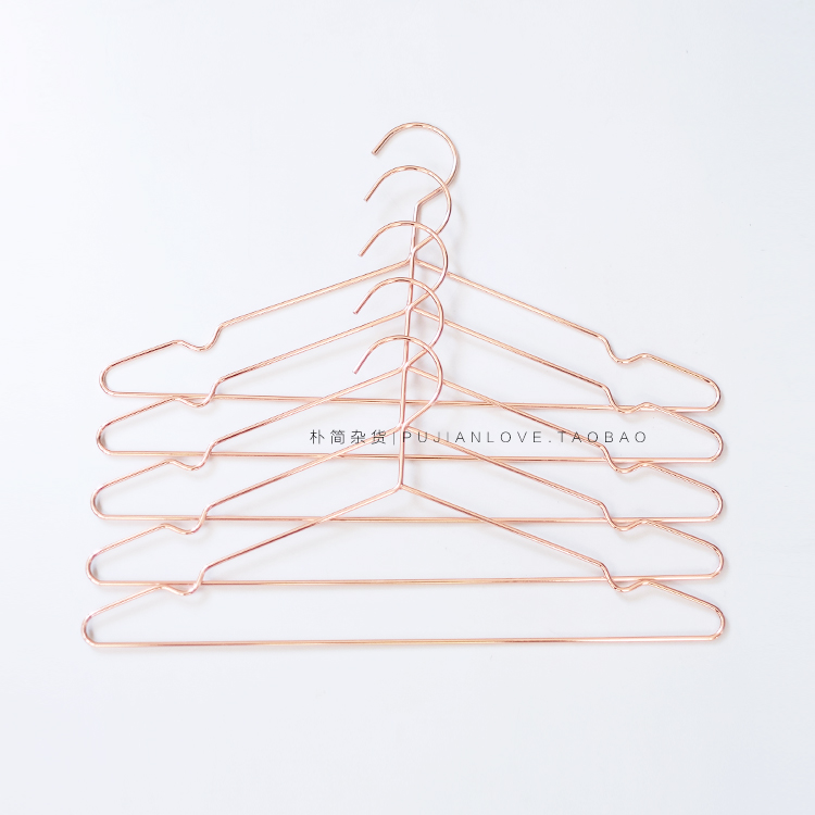 樸簡|北歐H款玫瑰金色晾衣架子 簡約文藝金屬掛衣架5支裝