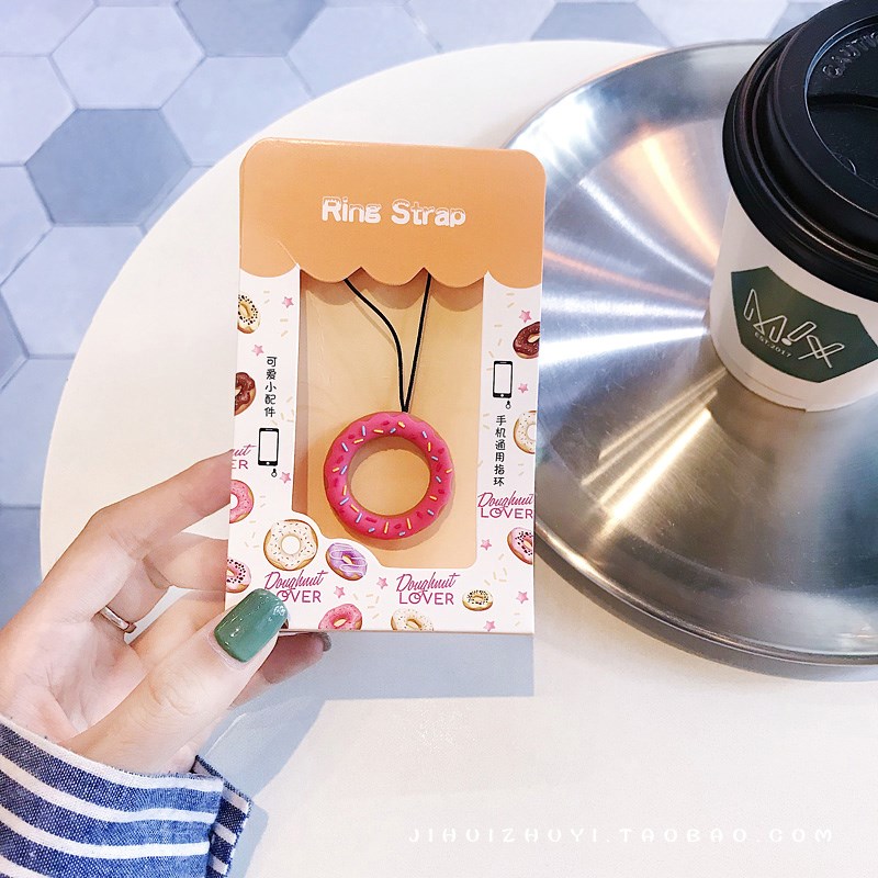 日韓國可愛卡通甜甜圈指環掛繩圈圈掛飾硅膠防摔防滑通用手機掛件