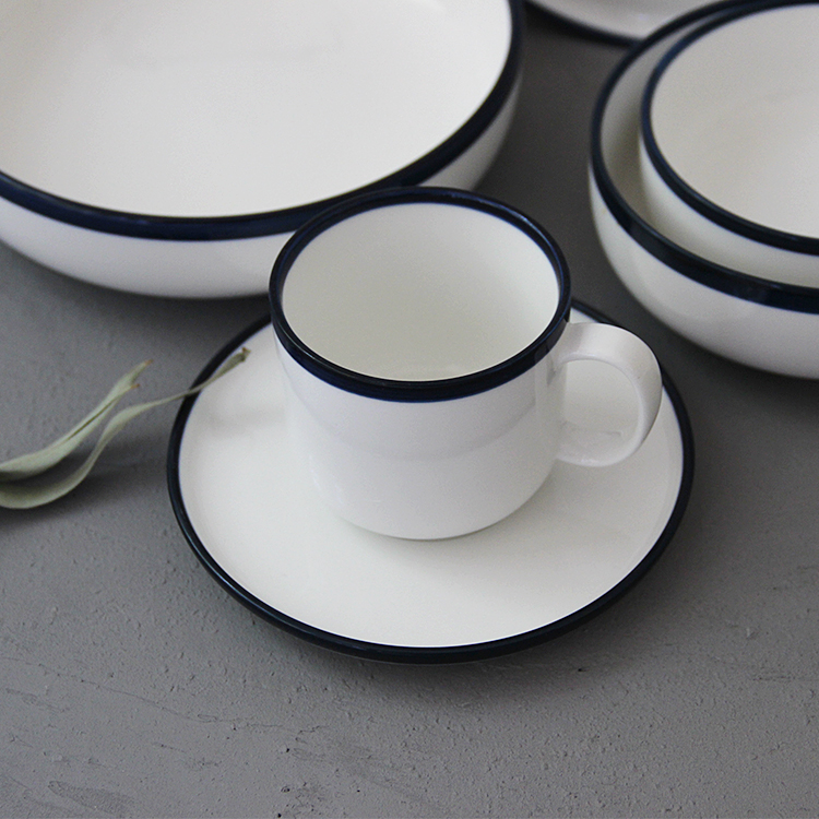 樸簡|北歐簡約百搭藍邊陶瓷餐具 圓形碗盤咖啡杯 餐具套裝
