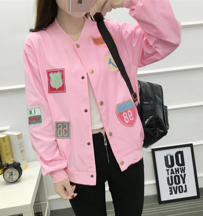 女裝外衣服韓版春秋季長袖百搭學生外套短款字母寬松棒球服女褂子