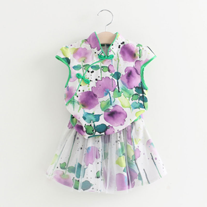 / 寶寶旗袍套裝 夏裝韓版新款女童童裝兒童印花兩件套tz-3019