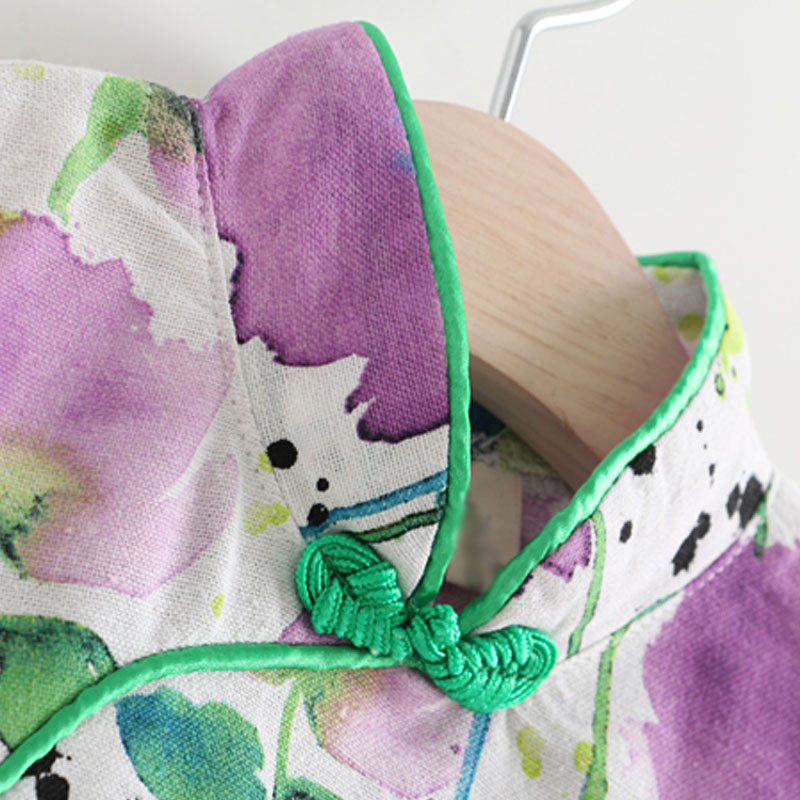 寶寶旗袍套裝 夏裝韓版新款女童童裝兒童印花兩件套tz-3019