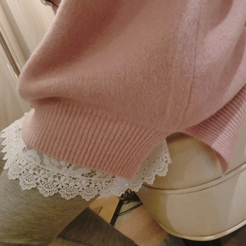 / 早春新款 韓范甜美花邊繡花蕾絲鏤空修身顯瘦內搭中長款打底衫女