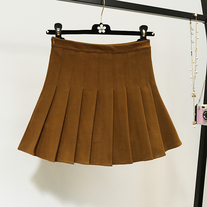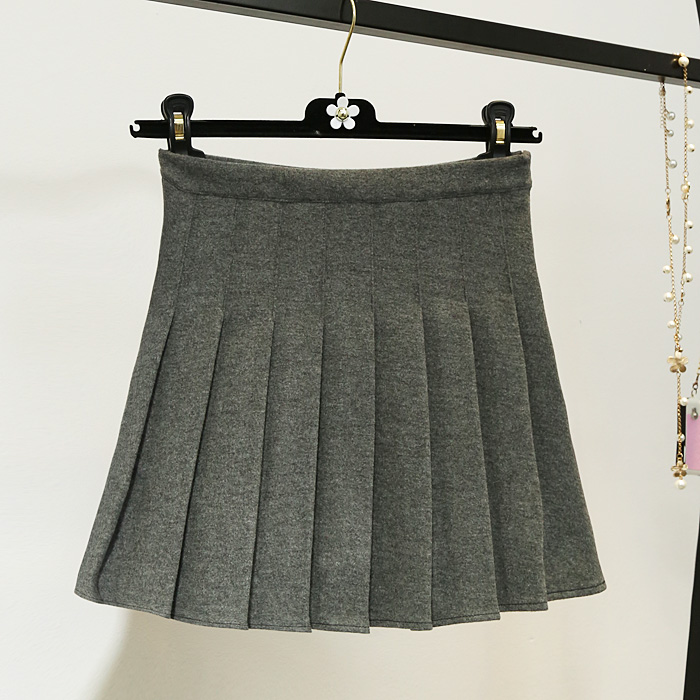 韓版高腰加厚毛呢百褶裙防走光半身裙秋冬A字短裙女蓬蓬裙褲裙