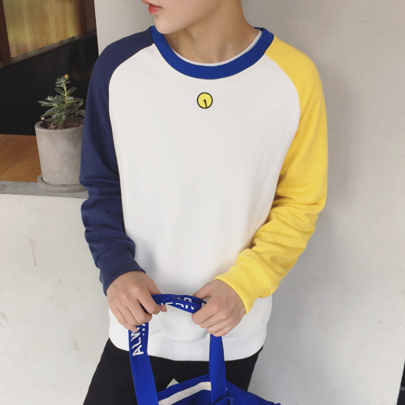 / 秋季新款韓版插肩袖圓領男士小清新長袖T恤打底衫
