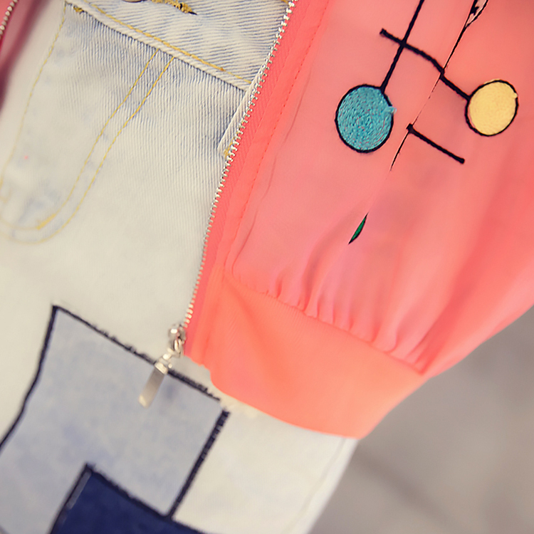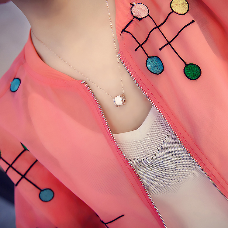 / 韓版女裝夏季新款圓領百搭五分袖空調開衫刺繡薄外套女短款防曬衣
