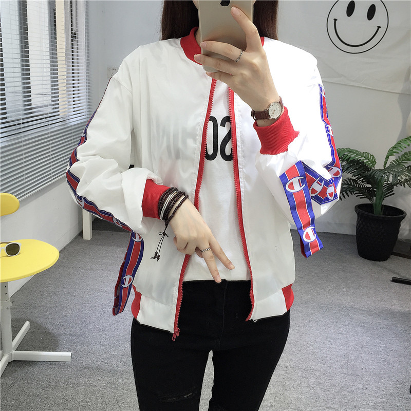 個性貼布飄帶薄款防曬衣夏季原宿bf風學生百搭寬松棒球服上衣女潮