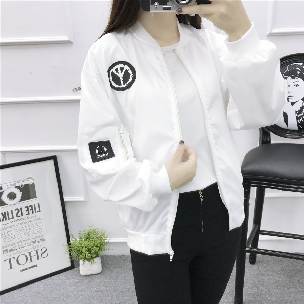 / 2017春秋新款學生韓版棒球服貼布寬松百搭飛行員夾克BF短款外套潮