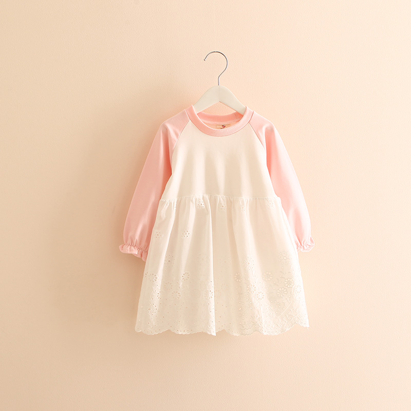 / 寶寶拼袖連衣裙 秋裝韓版新款女童童裝 兒童鏤空裙子qz-3139