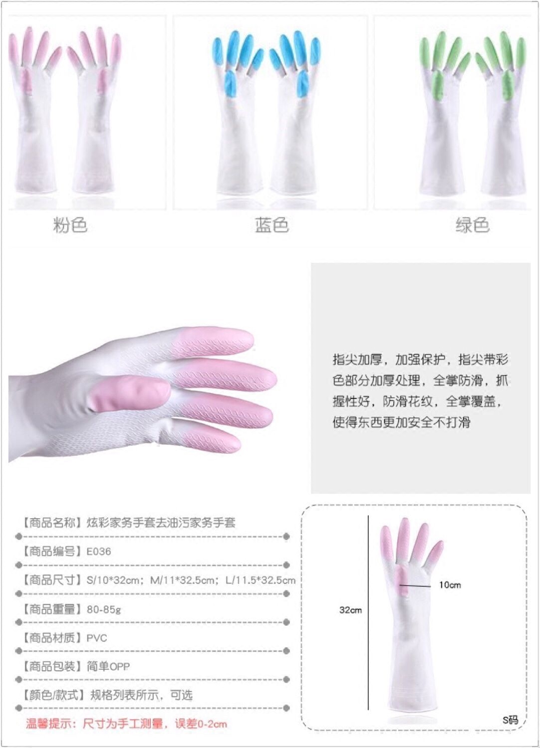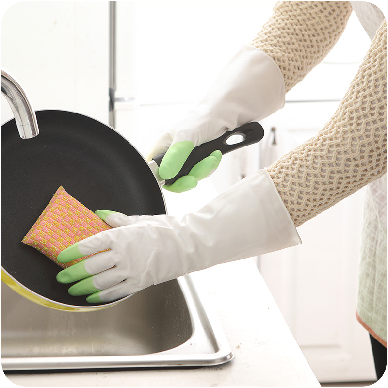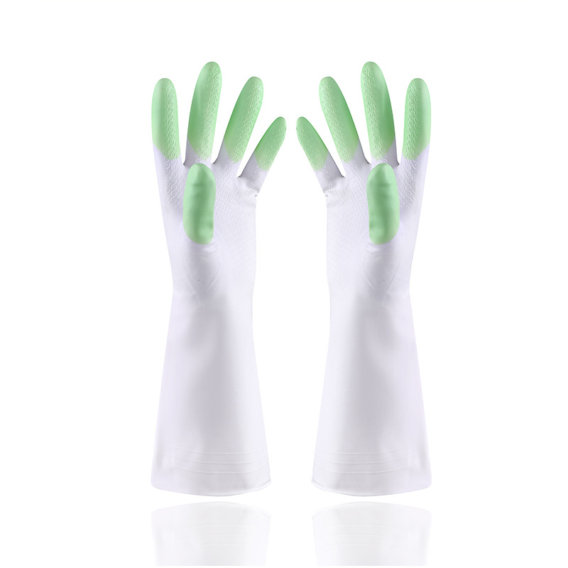 / 螺旋紋防滑防水塑乳膠手套耐用薄款防油污洗碗拼色護膚清潔長手套