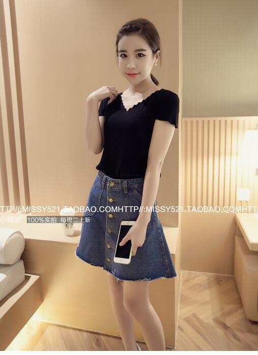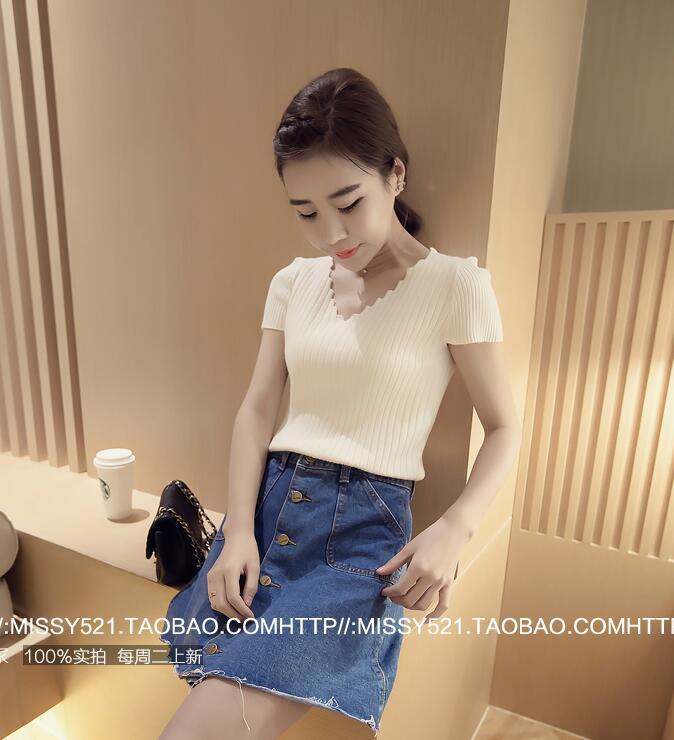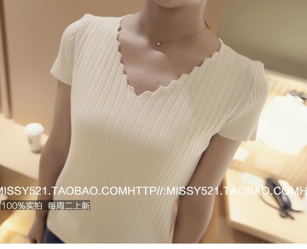 / 夏季新款韓版女裝修身顯瘦上衣短袖V領螺紋百搭針織T恤女小衫