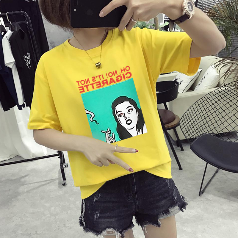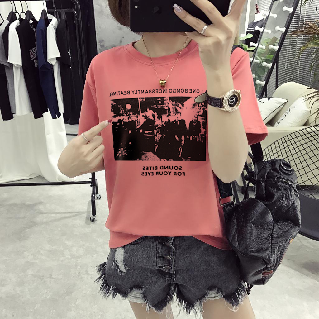 夏裝T恤女新款韓版寬松短袖上衣時尚印花打底體恤學生閨蜜裝
