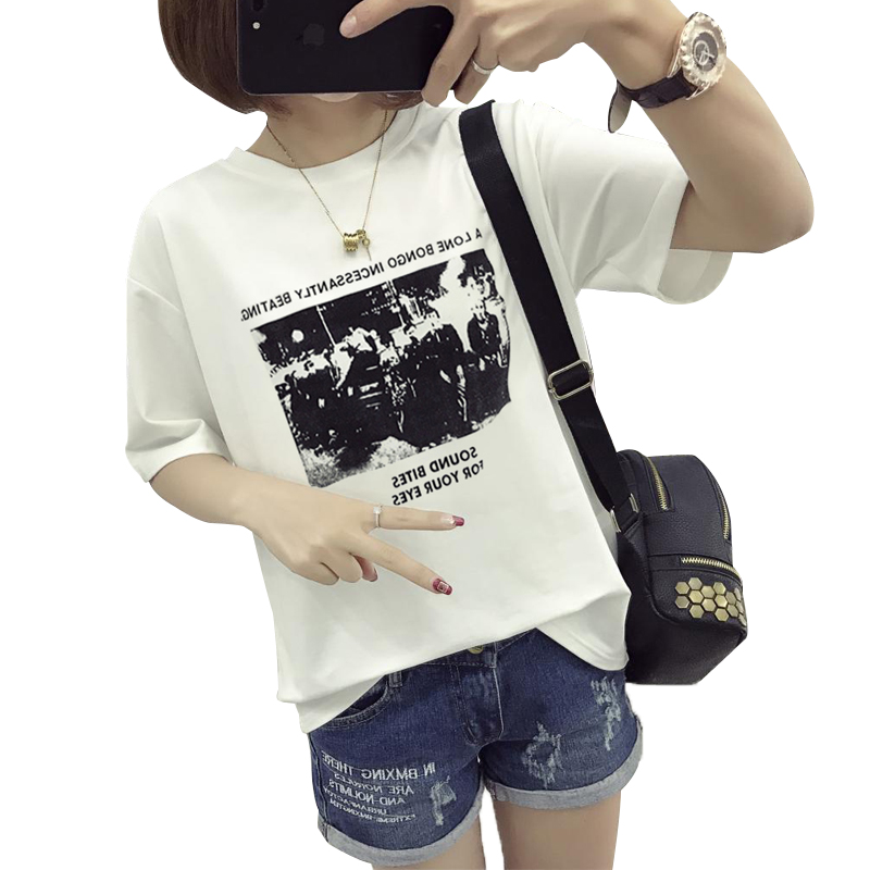 / 夏裝T恤女新款韓版寬松短袖上衣時尚印花打底體恤學生閨蜜裝