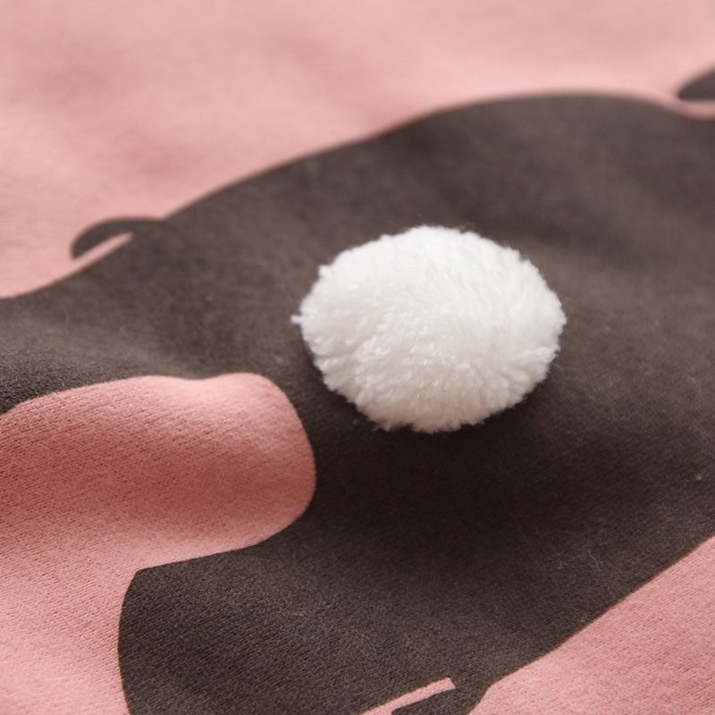 此款印花工藝為膠印或印染,毛球針縫
