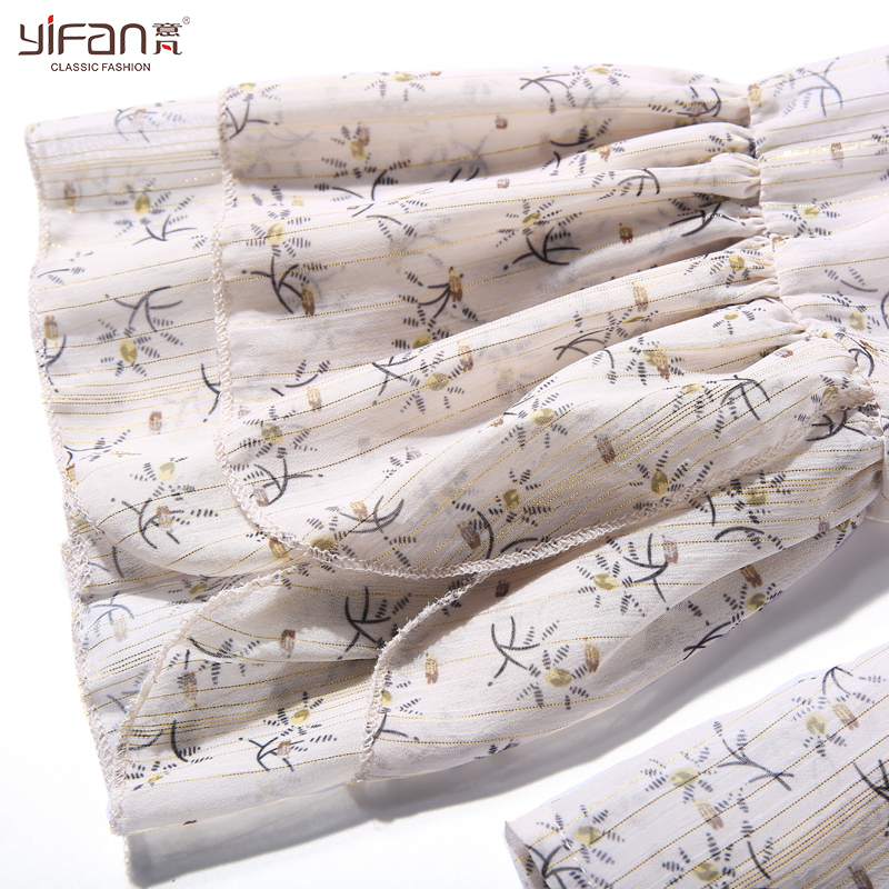韓國東大門新款荷葉邊雪紡衫喇叭袖新款荷葉邊V領上衣碎花襯衫夏