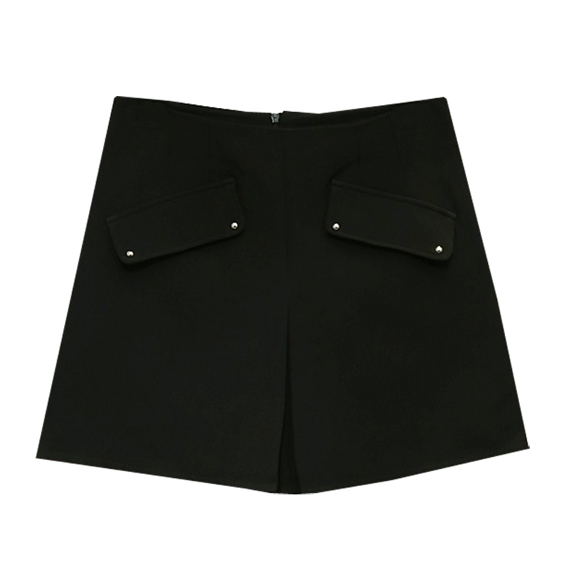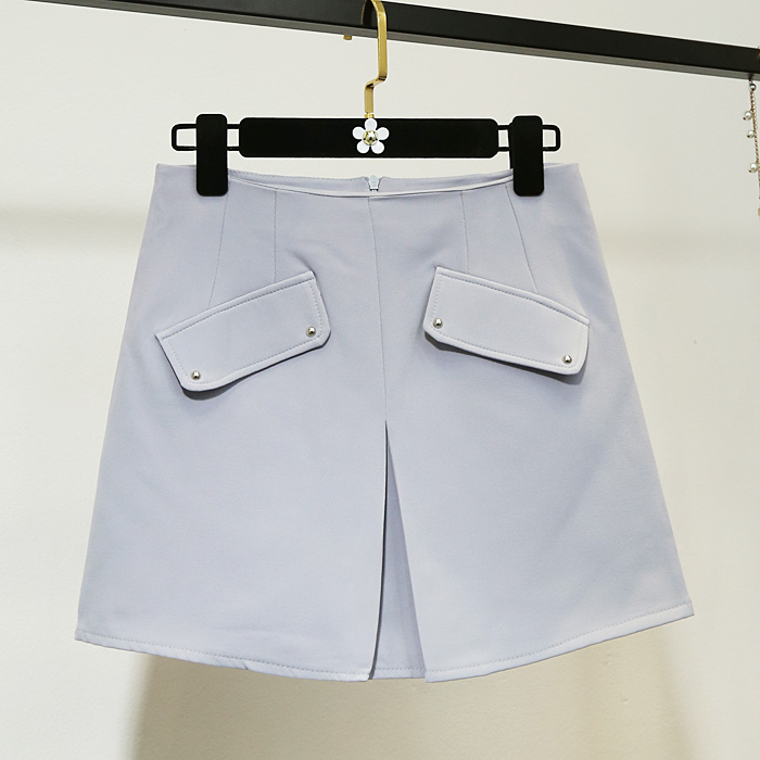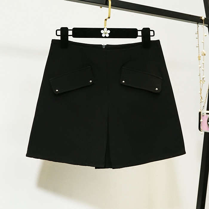 春夏季韓版高腰口袋裝飾不規則開叉a字半身裙百搭包臀短裙女