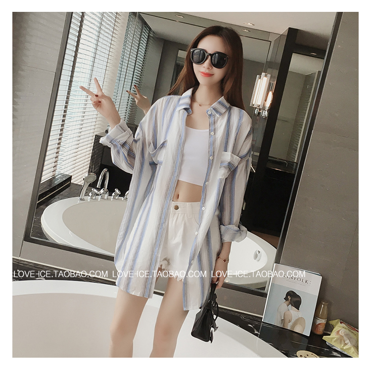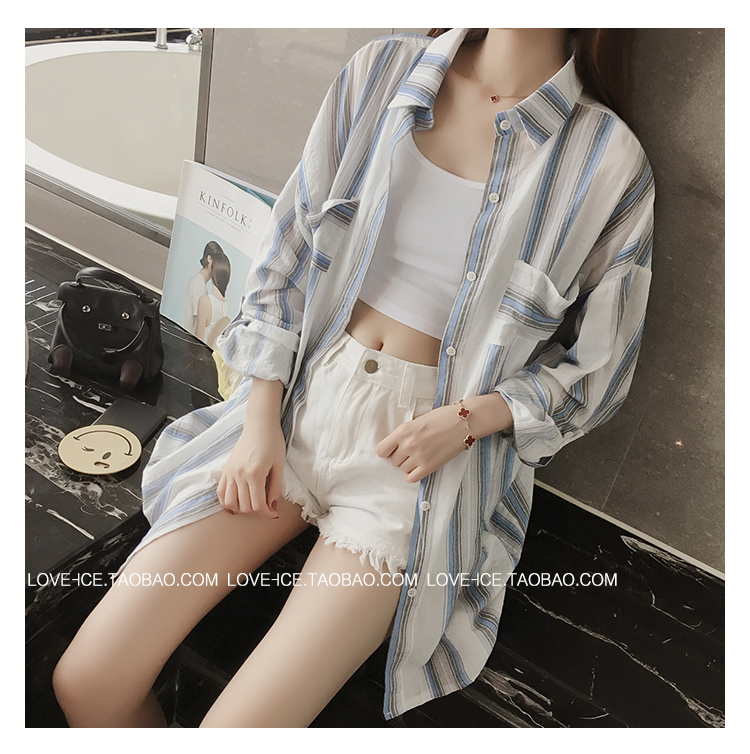 / 防曬衣女空調衫夏季新款女裝2017韓范寬松長袖中長款沙灘防曬襯衫
