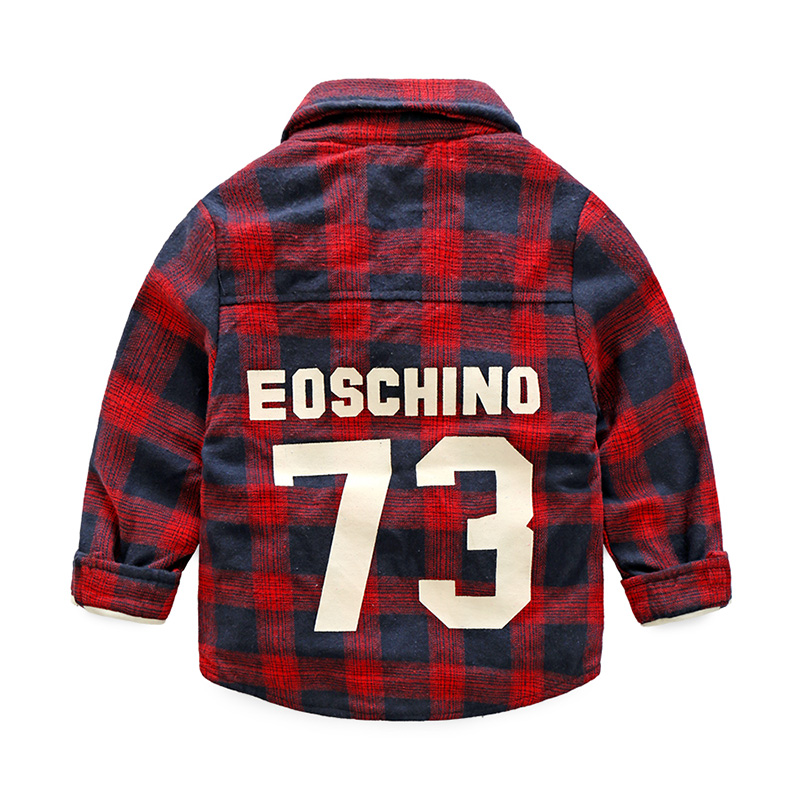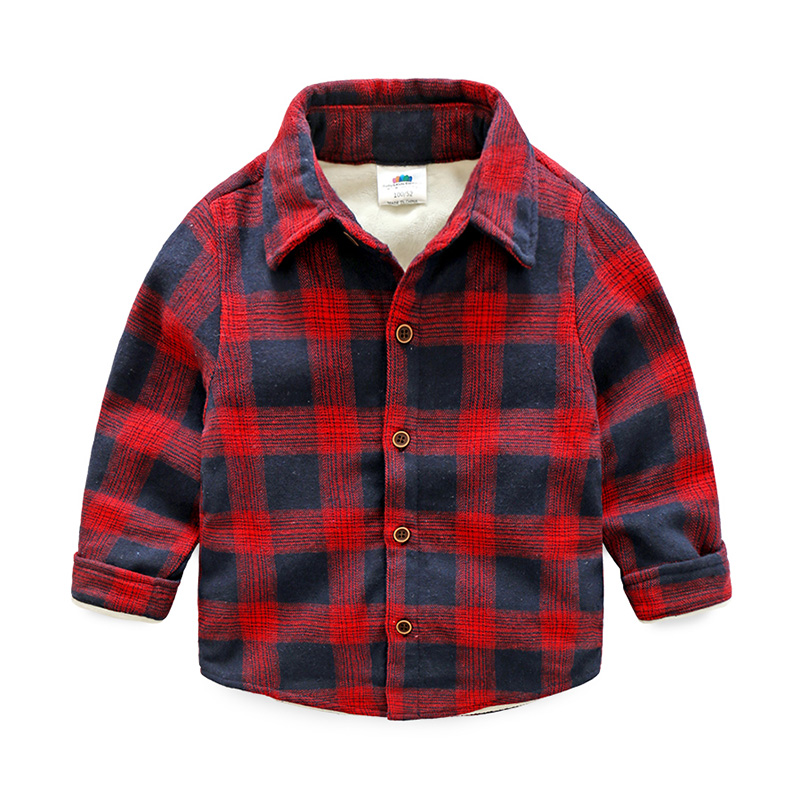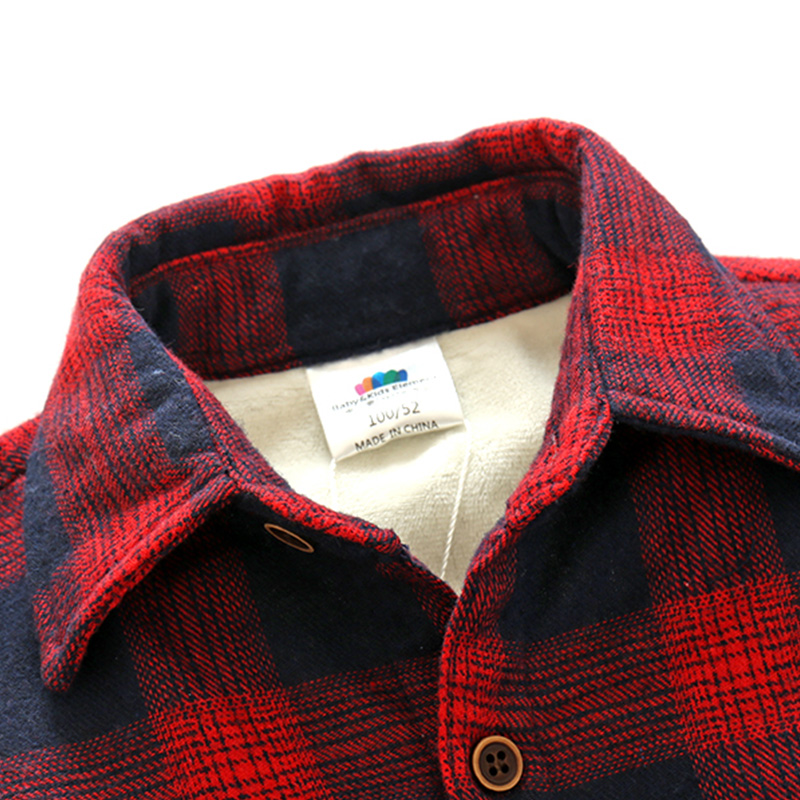 寶寶加絨長袖襯衫 冬裝韓新款男童童裝兒童格子襯衣tx-6380