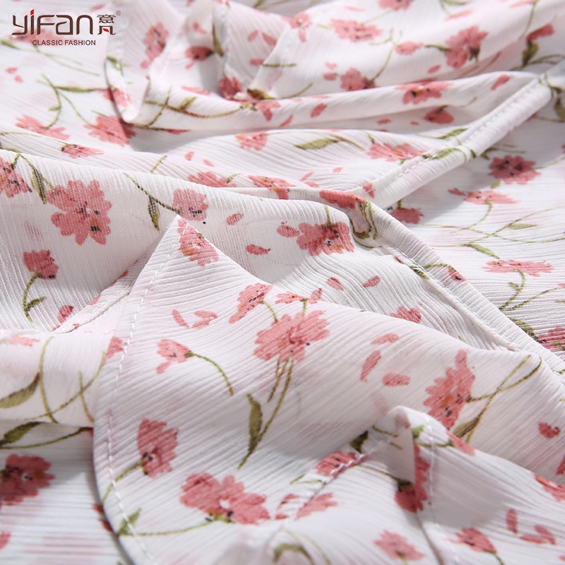 韓版夏新款荷葉邊喇叭袖氣質小清新雪紡衫女碎花長袖寬松V領襯衫