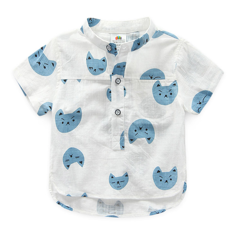 / 寶寶小貓襯衣 夏裝新款童裝男童裝兒童立領短袖襯衫潮tx-6607