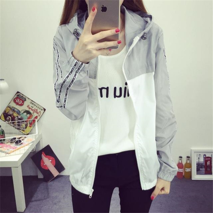 春夏外套女韓版學生BF原宿風寬松時尚拼色百搭連帽長袖休閑棒球服