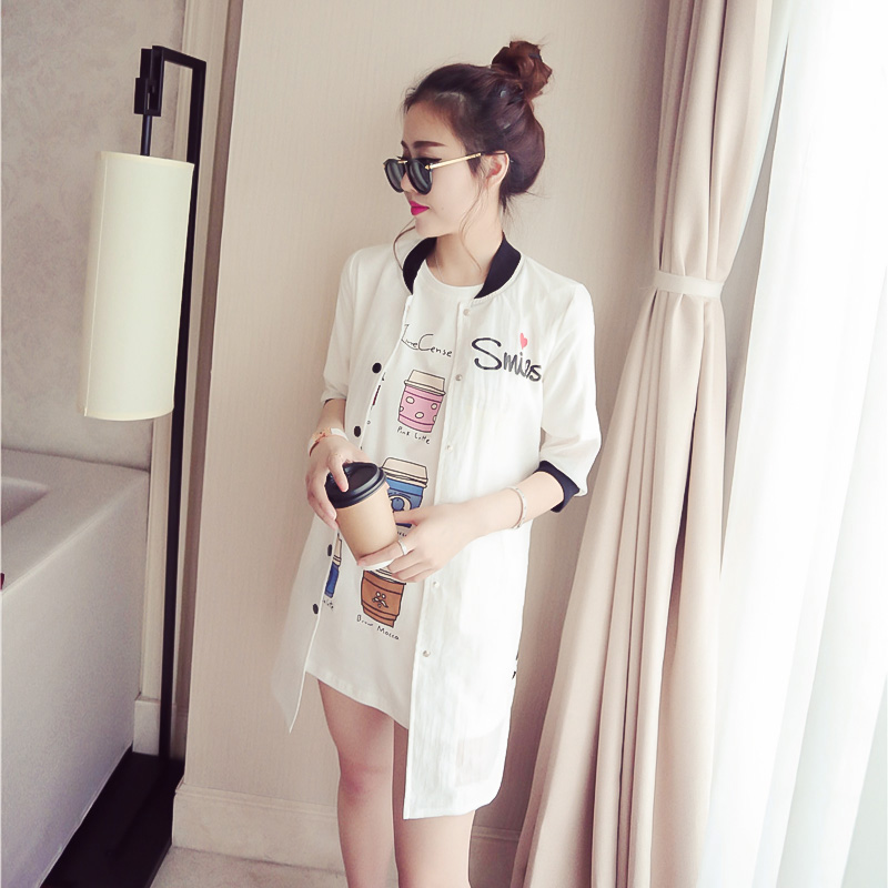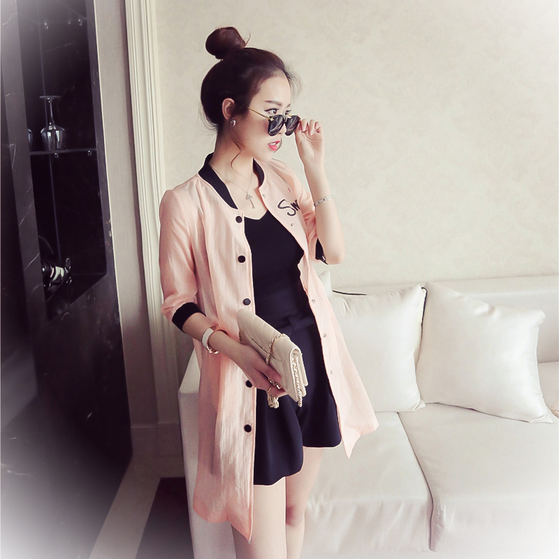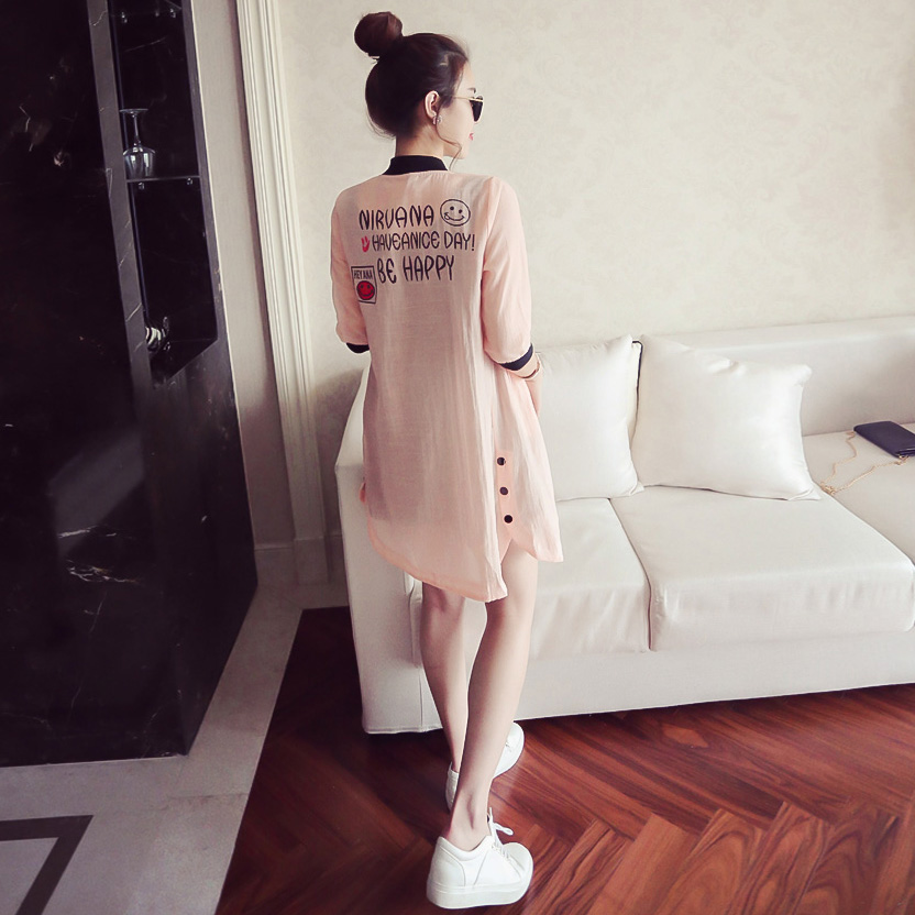 韓版夏裝新款字母印花風衣中長款空調開衫大碼薄外套寬松防曬衣女