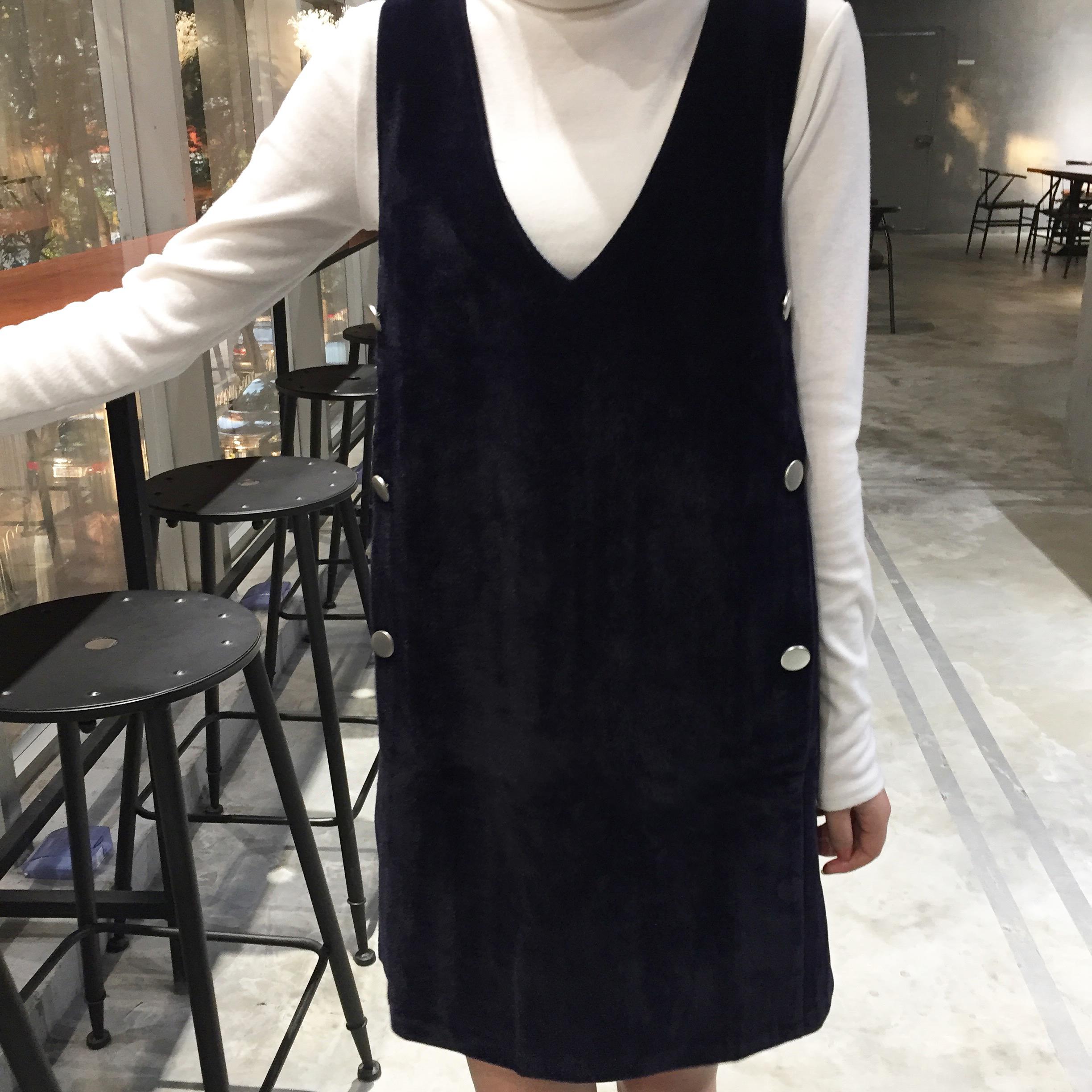 韓國秋冬款氣質修身顯瘦無袖雙排扣V領背心裙連衣裙女打底裙