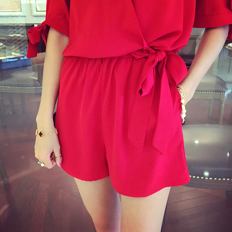 夏季特大碼女裝闊腿連體褲寬松胖妹妹200斤顯瘦短褲短袖假兩件套