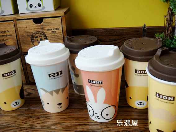 樂遇屋 可愛萌系動物聯盟帶蓋馬克杯 高款帶硅膠蓋陶瓷杯