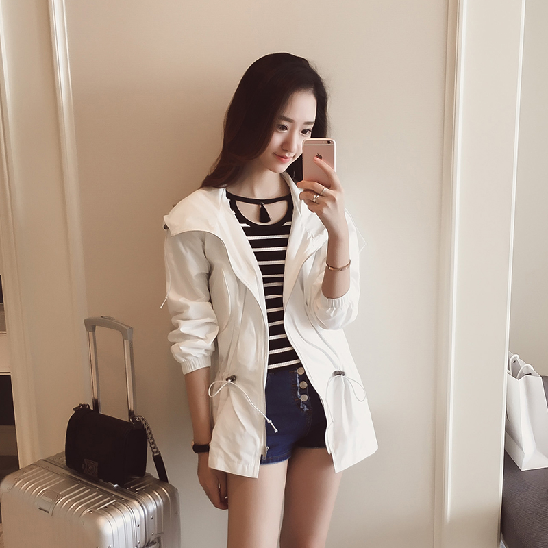 / 春夏裝新款韓版寬松顯瘦抽繩連帽防曬中長款棒球服休閑開衫外套女