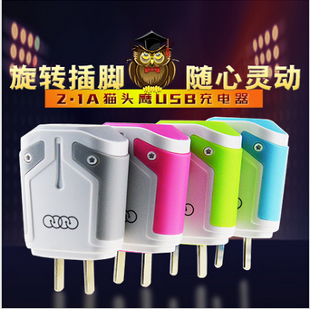 廠家565 2.1A貓頭鷹USB充電器 旋轉插腳 手機通用快充充電數據線
