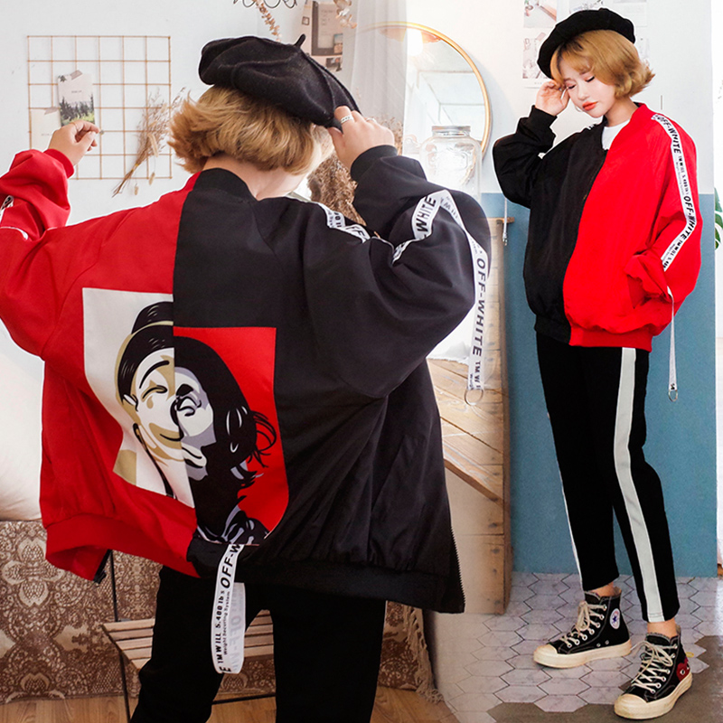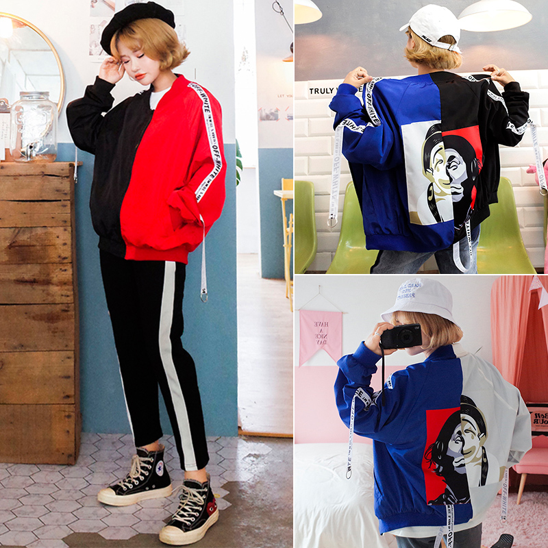 / 2017秋季原宿BF雙面人生小丑印花夾克男女情侶學生款棒球服外套女