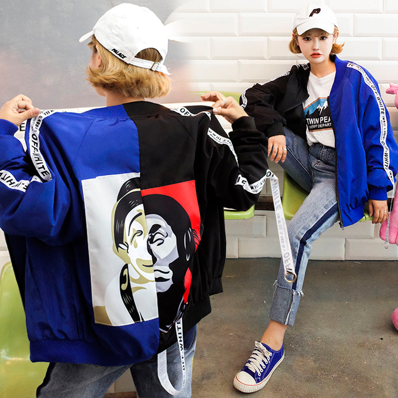2017秋季原宿BF雙面人生小丑印花夾克男女情侶學生款棒球服外套女