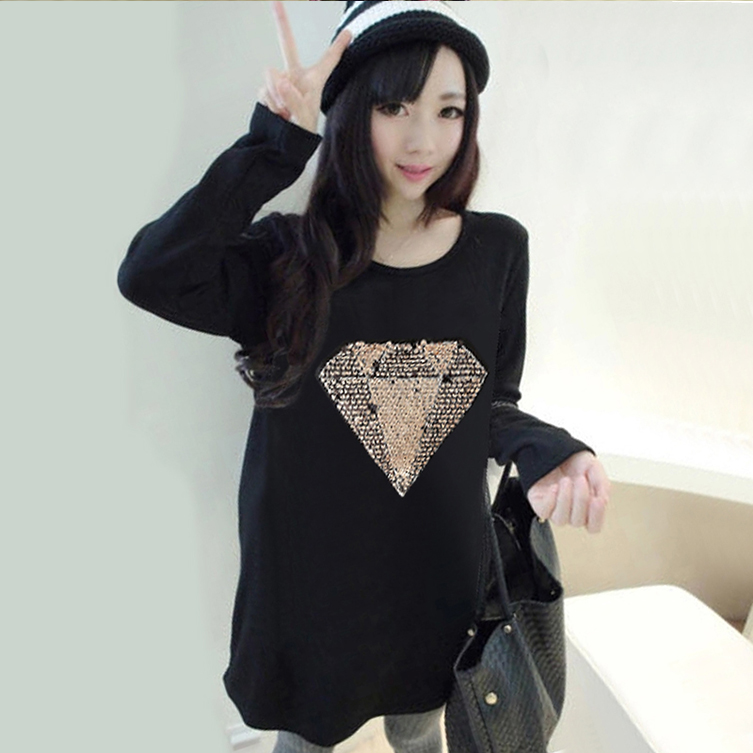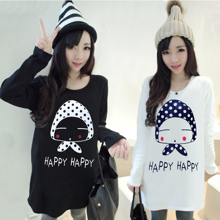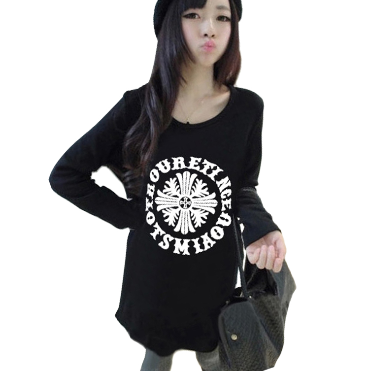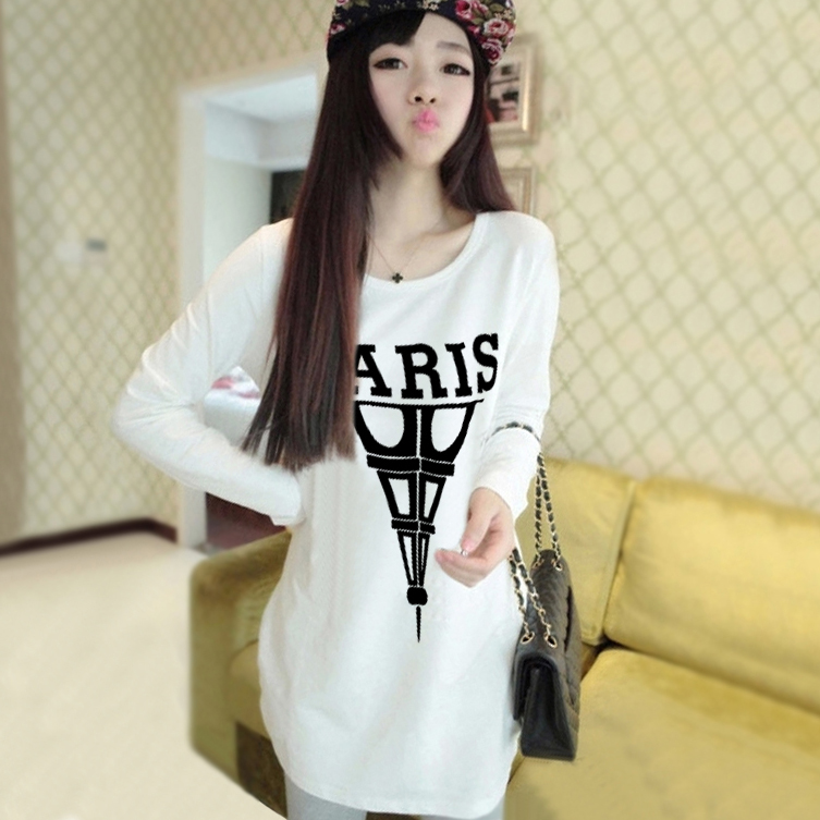 / 韓版寬松長袖t恤女春秋新款印花學生打底體恤中長款顯瘦大碼上衣
