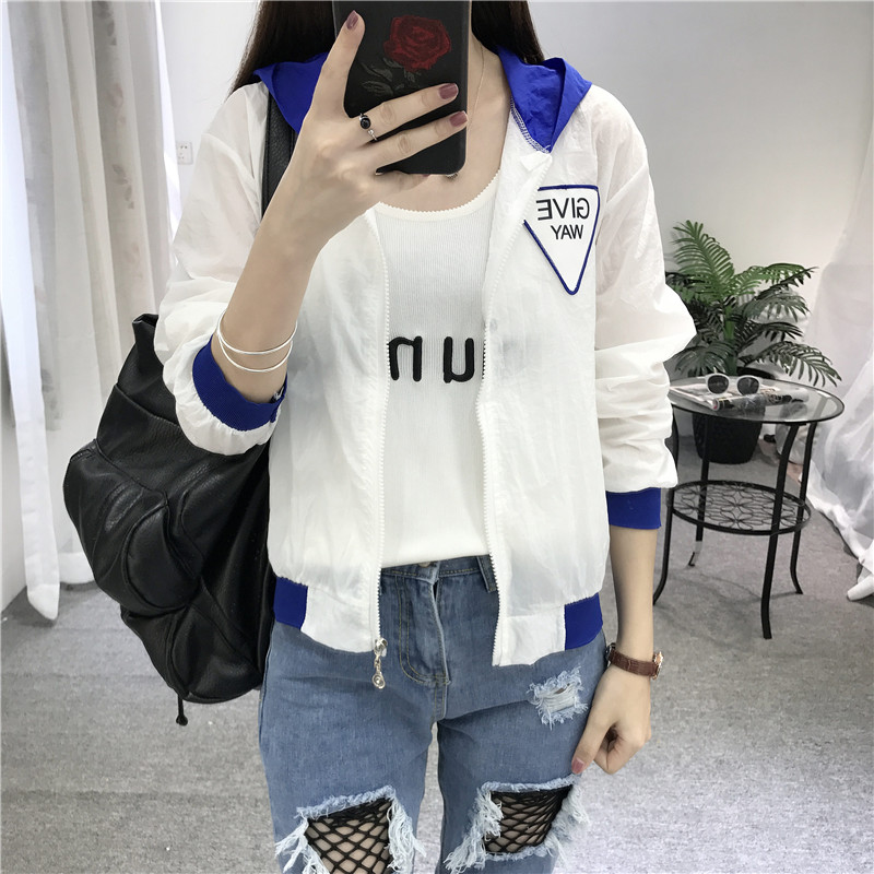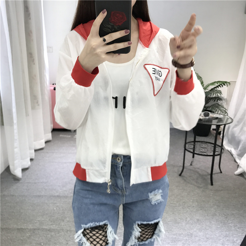 防曬衣女2017夏季新款韓版寬松bf印花百搭學生休閑連帽短款外套潮