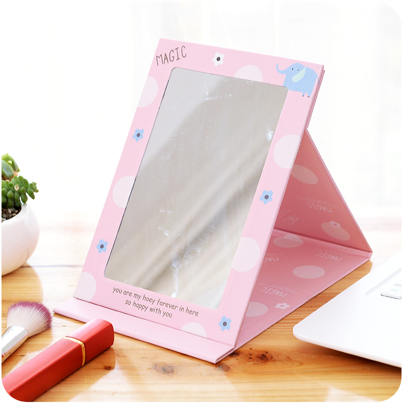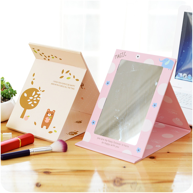 / 精品美容補妝臺式卡通化妝梳妝鏡便攜卡通紙折疊鏡子隨身鏡折疊鏡
