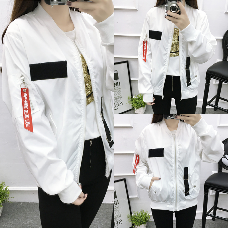 外套女春秋韓版BF2017新款原宿學院風貼布學生牛仔蝙蝠袖棒球服潮
