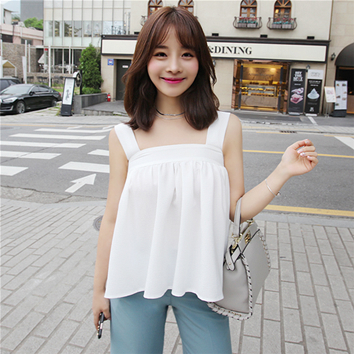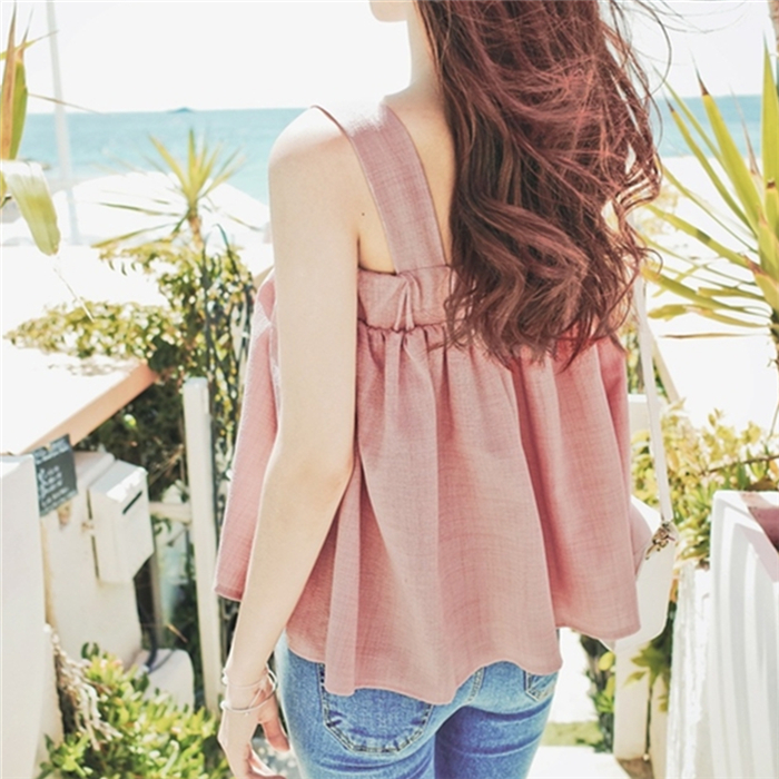 2017泰國度假旅游波西米亞小清新甜美純色短款娃娃衫一字領小吊帶