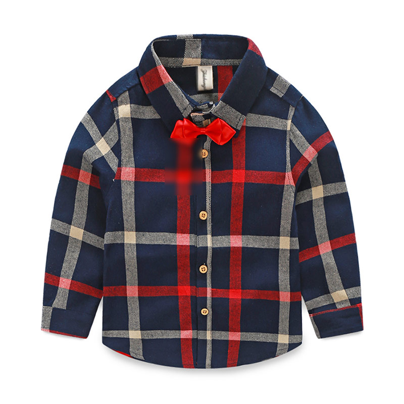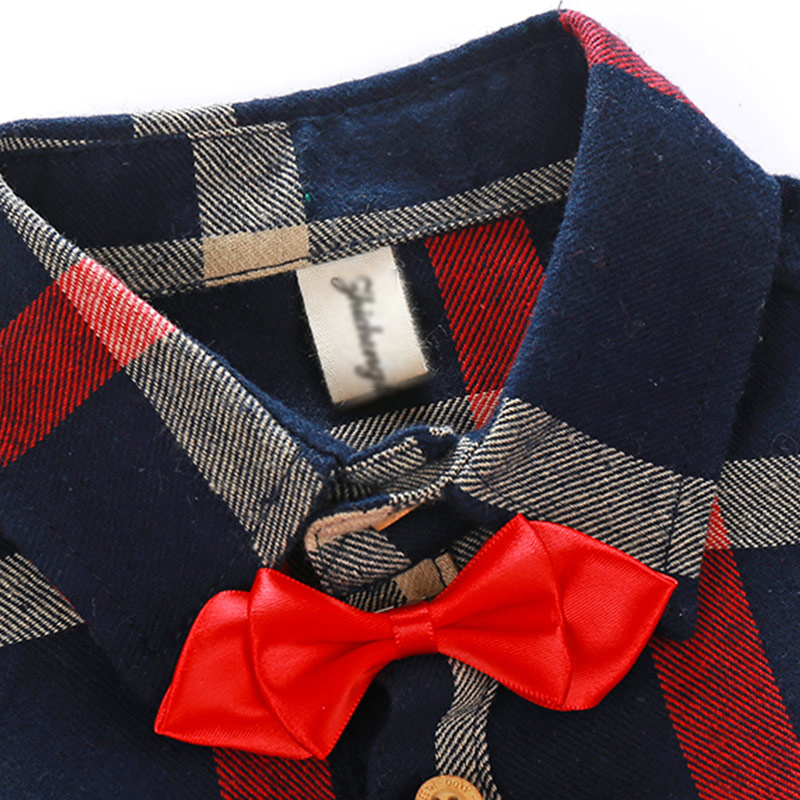 寶寶長袖襯衫 秋裝韓新款男童童裝兒童格子領結襯衣tx-6258